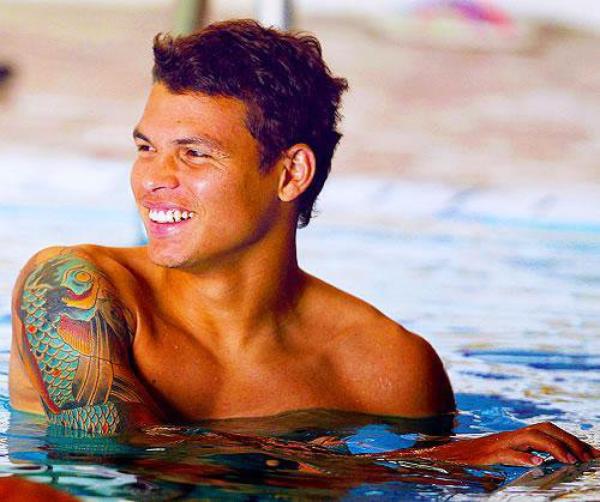 Tatouage de carpe sur le bras de thiago silva, PSG et bresil