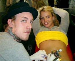 La chanteuse Britney Spears, aussi célèbre aujourd’hui pour son succès précoce dans la chanson et les tubes qui l’ont propulsée avant même sa majorité en haut des charts, que pour ses frasques nocturnes et ses accès de folie (elle a connu des phases de déprime, s’est rasée la tête, a connu plusieurs séparations largement relatées dans la presse à scandale dont elle truste souvent la couverture), possède son lot de tattoos, qui sont pour la plupart de petites pièces aux motifs très classiques, dont l’on peut retrouver les modèles dans la plupart des planches de flash des salons de tatouage. La signification des tatouages de Britney Spears est généralement mal connue, et il est de notoriété publique que leur sens est plutôt flou, même pour la principale intéressée…
